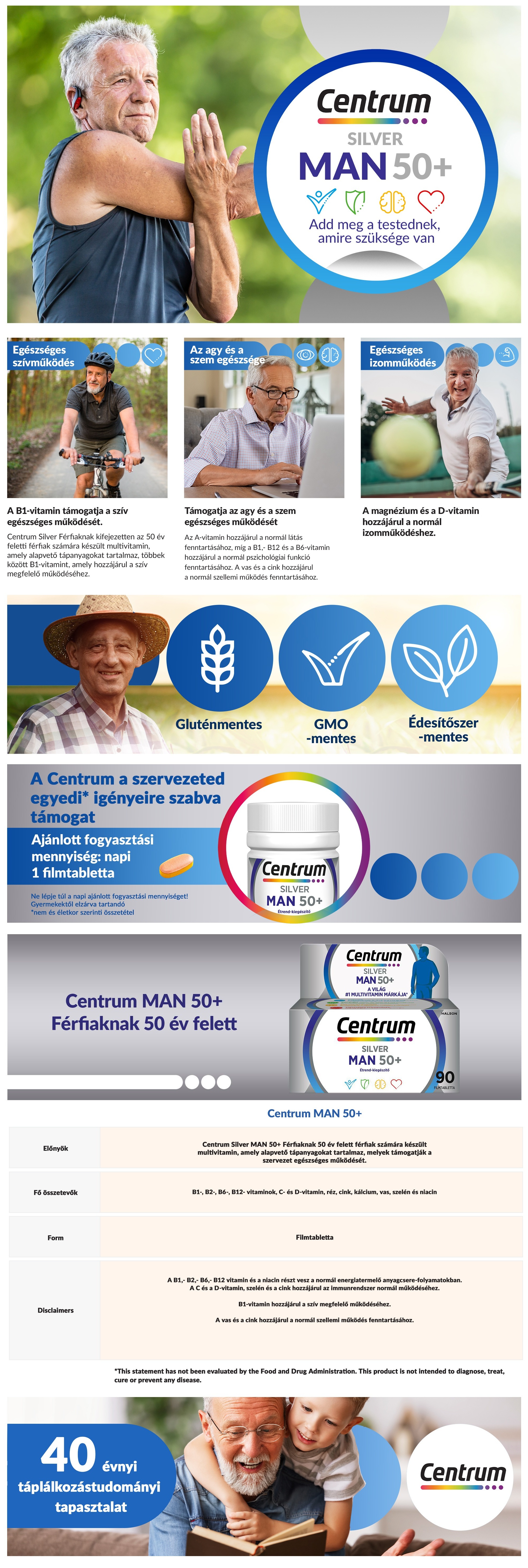 Különlegesen kiegyensúlyozott formuláját a férfiak tápanyagszükségletére szabták, esszenciális mikrotápanyag (vitaminok, ásványi anyagok és nyomelemek) tartalmával hozzájárul tápanyagszükségletük fedezéséhez, ideális étrend-kiegészítést kínálva az idősebb éveiket töltő férfiak számára.