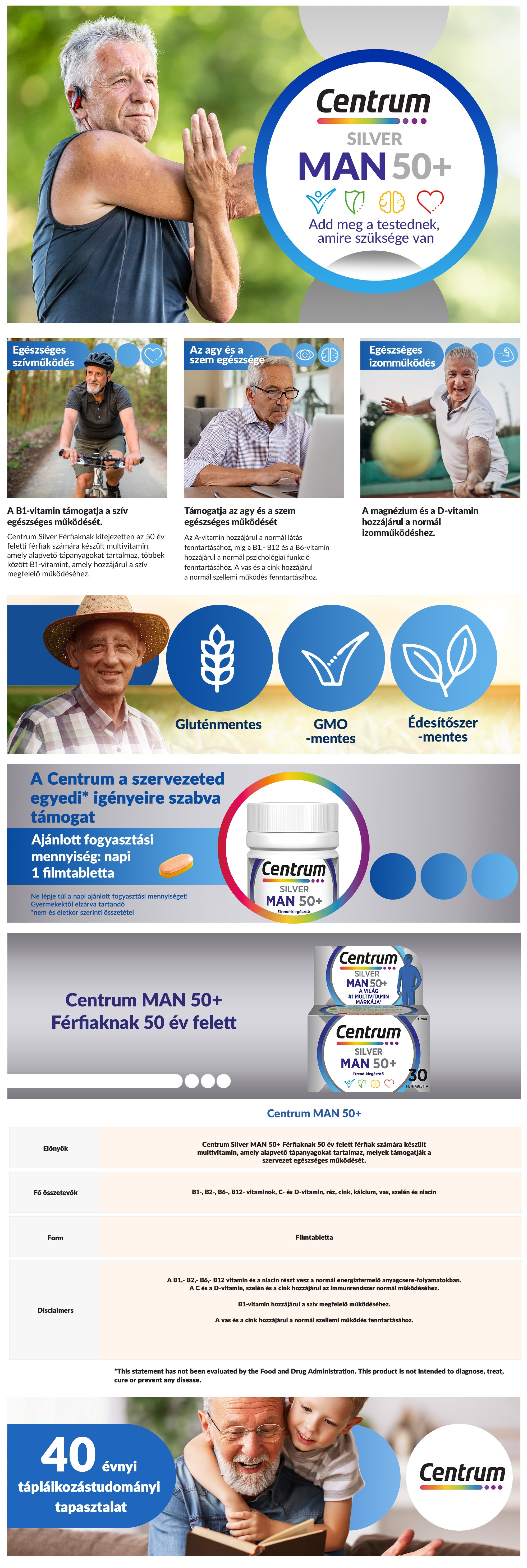 Különlegesen kiegyensúlyozott formuláját a férfiak tápanyagszükségletére szabták, esszenciális mikrotápanyag (vitaminok, ásványi anyagok és nyomelemek) tartalmával hozzájárul tápanyagszükségletük fedezéséhez, ideális étrend-kiegészítést kínálva az idősebb éveiket töltő férfiak számára.